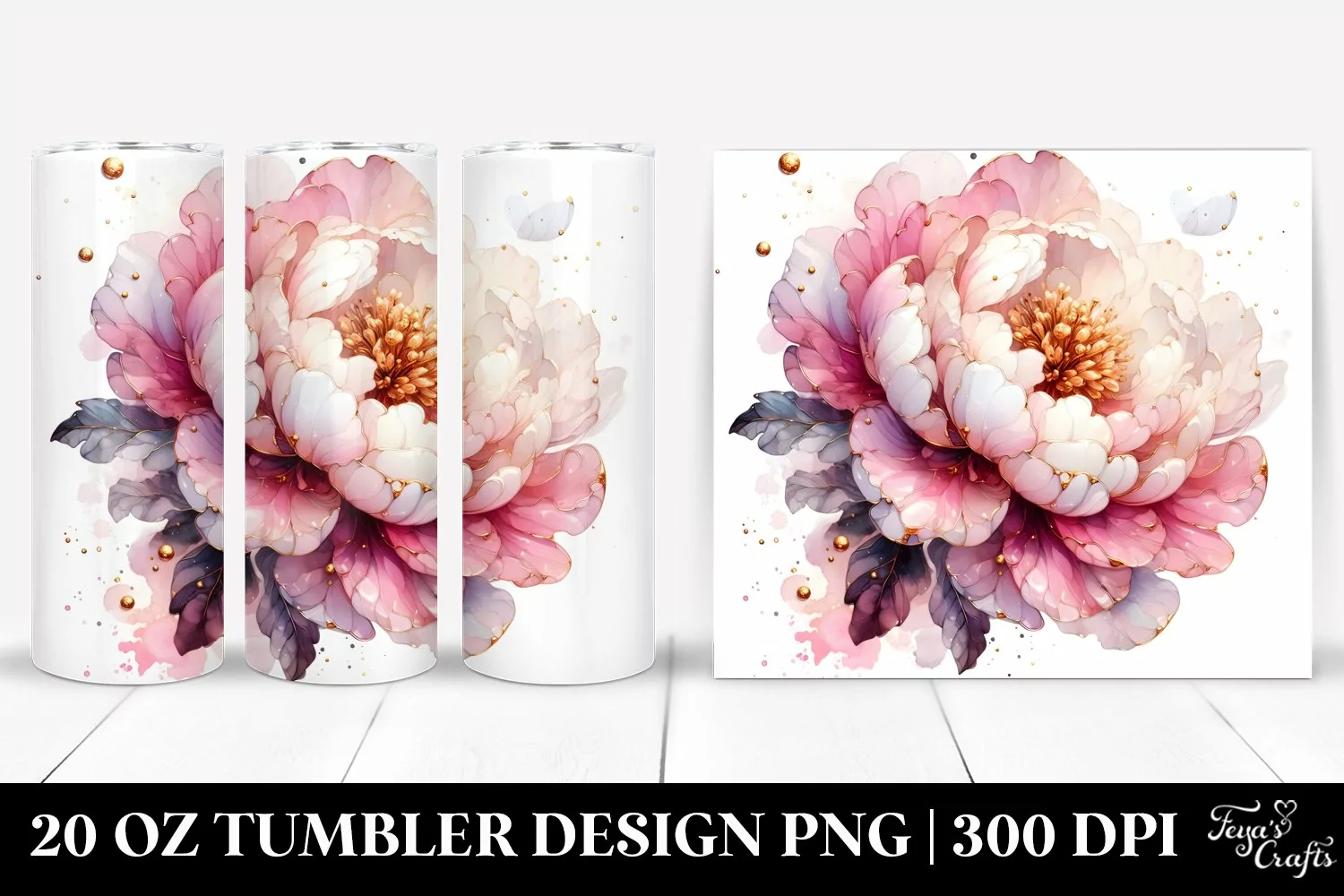 20 Oz Tumbler Sublimation | Glossy Peonies Splash example image 1