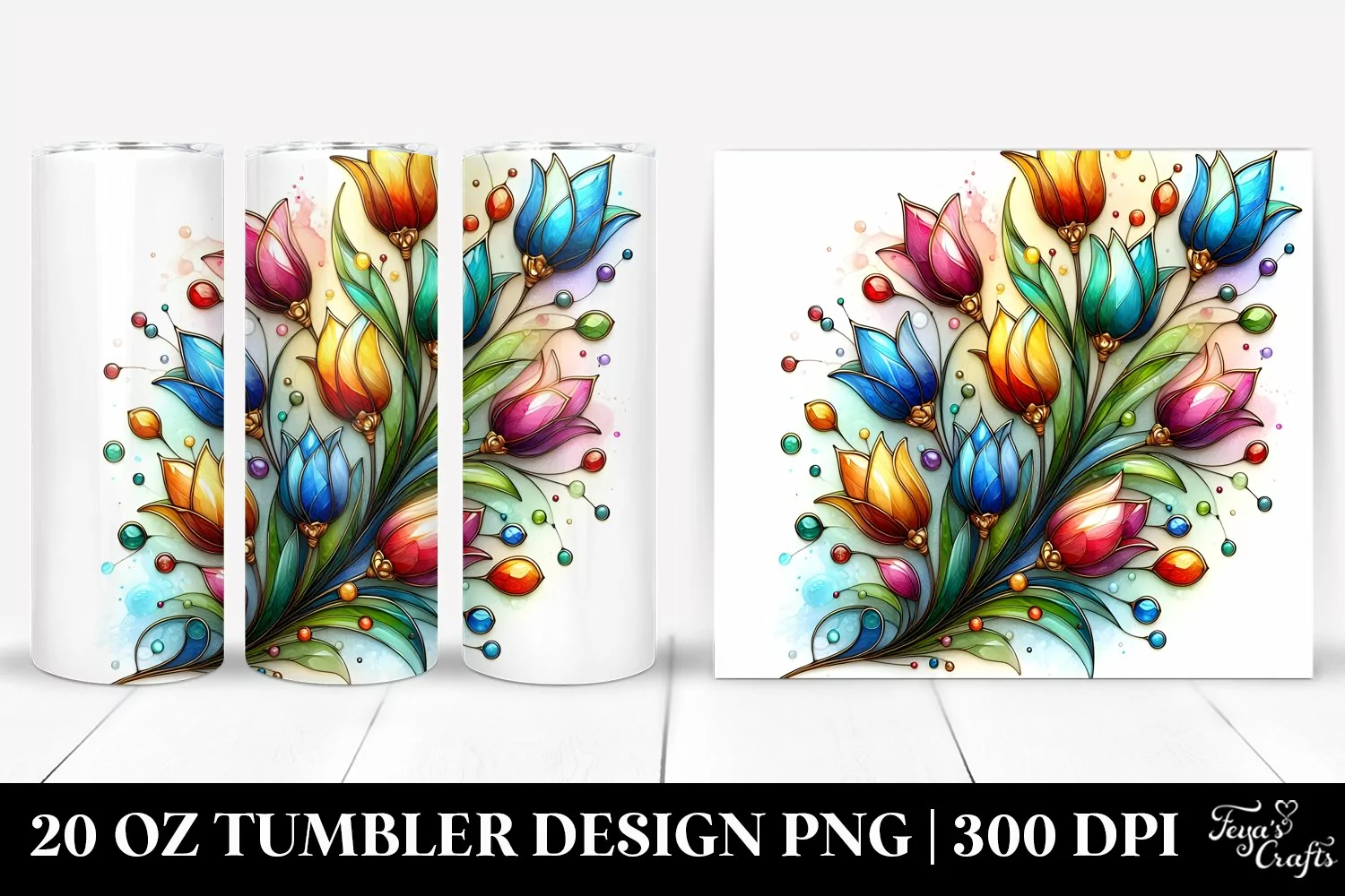 Similar Design Products to Colorful Stained Tulip Splash | 20 Oz Tumbler