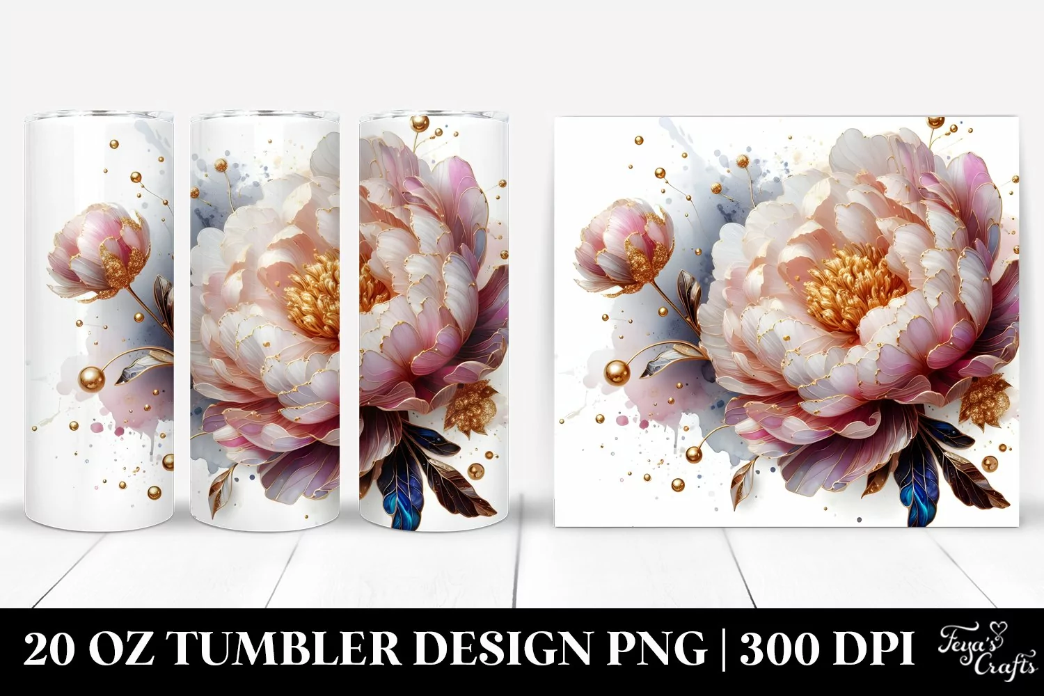 Similar Design Products to Shiny Peonies with Golden Insertions | 10 Oz Tumbler