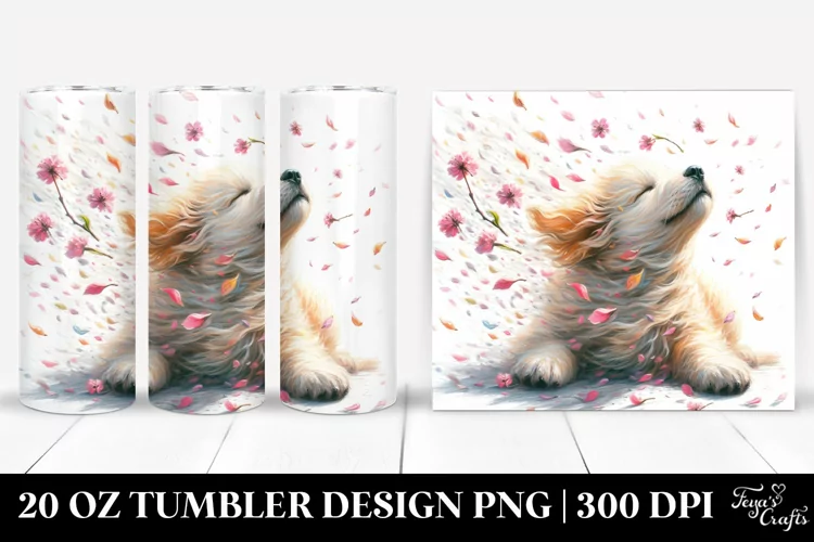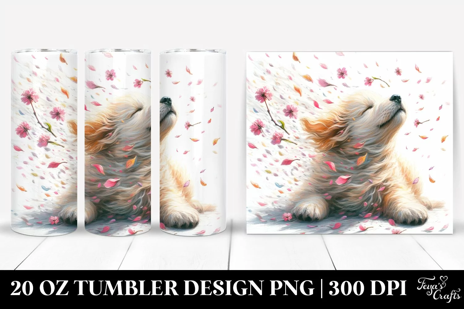 20 Oz Tumbler Sublimation | Tumbling Dog with Spring Petals example image 1
