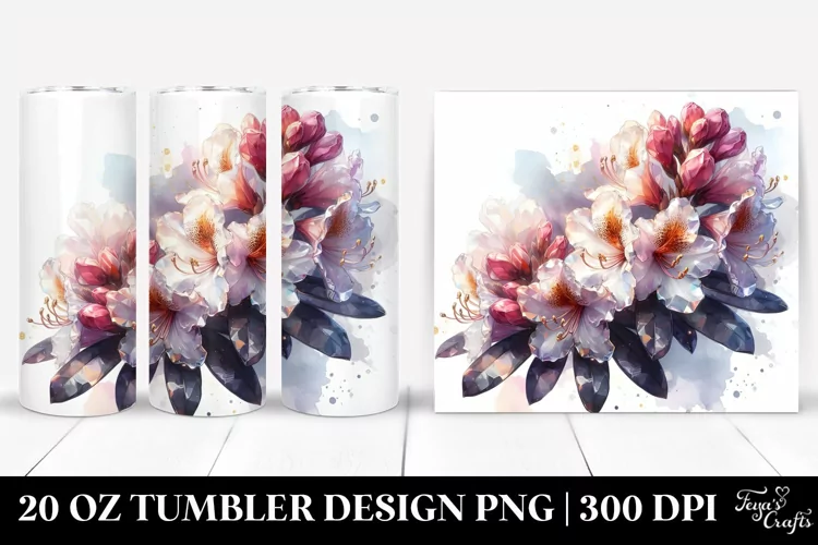 20 Oz Tumbler Sublimation | Shiny Rhododendron with Golden example image 1