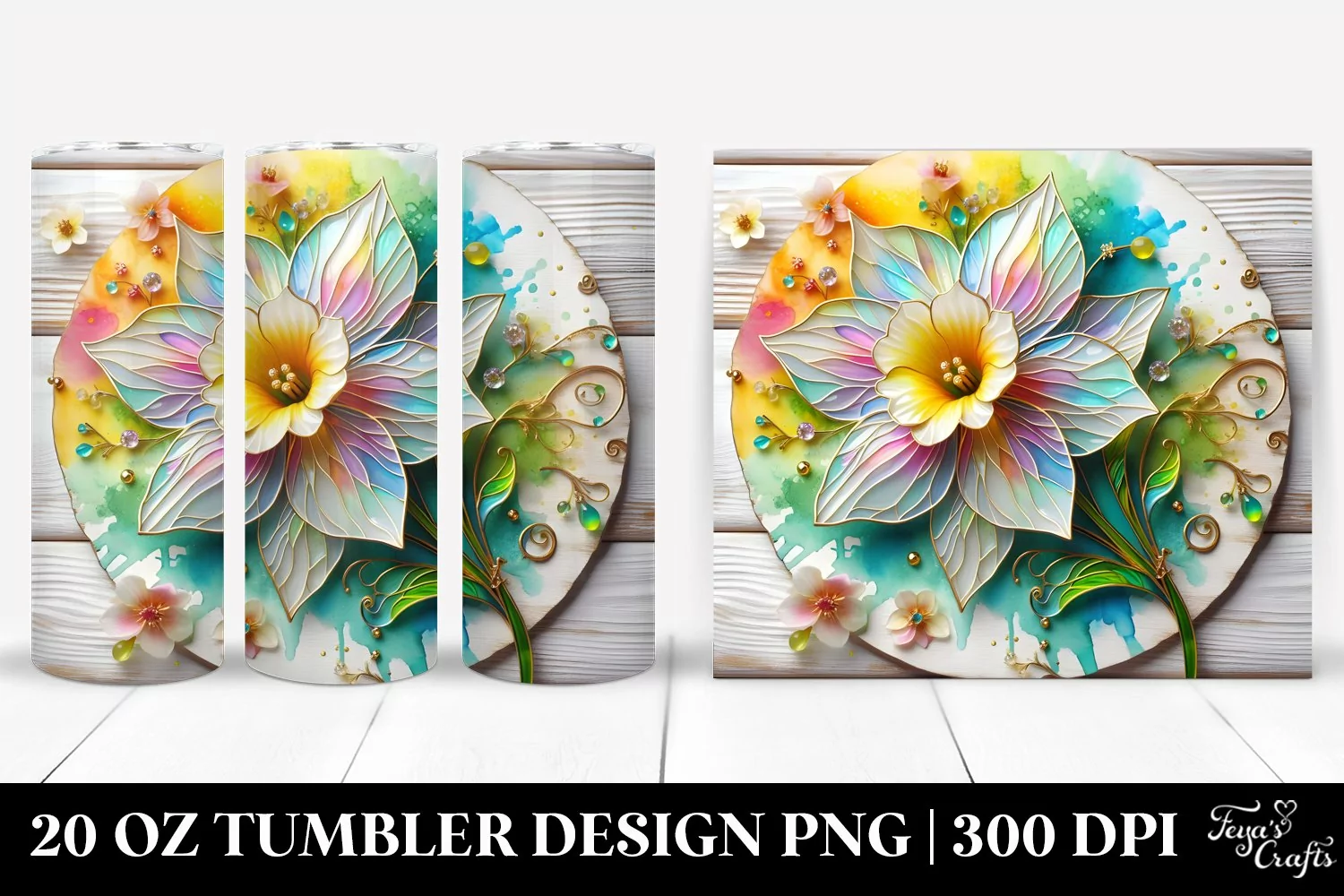 20 Oz Tumbler Sublimation | Colorful Narcissus on Wooden example image 1