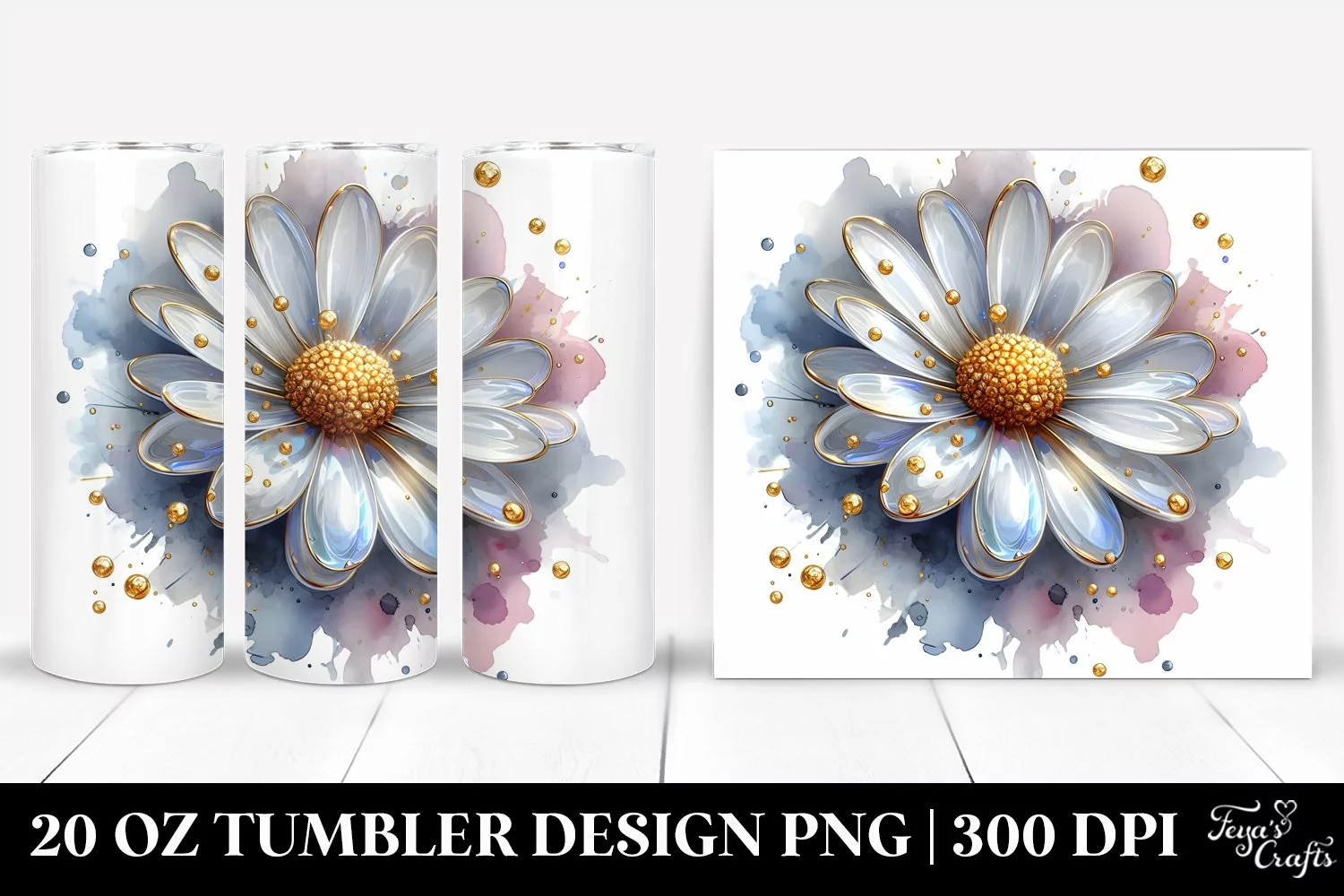 Similar Design Products to 20 Oz Tumbler Sublimation | Daisy with Golden Insertions