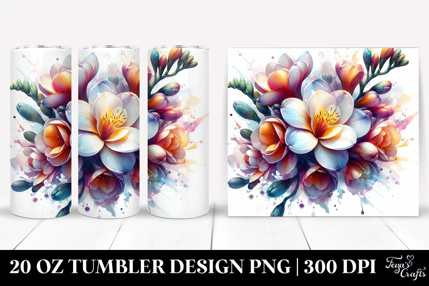 Sticker Summer Easter Flower Glossy Glass Sublimation Tumbler Freesia Watercolorsplash