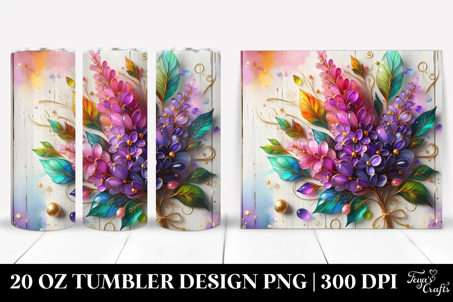 Easter Flower Wooden Background Material Sublimation Whitebackground Watercolorsplash Goldinsertions Floralswirls