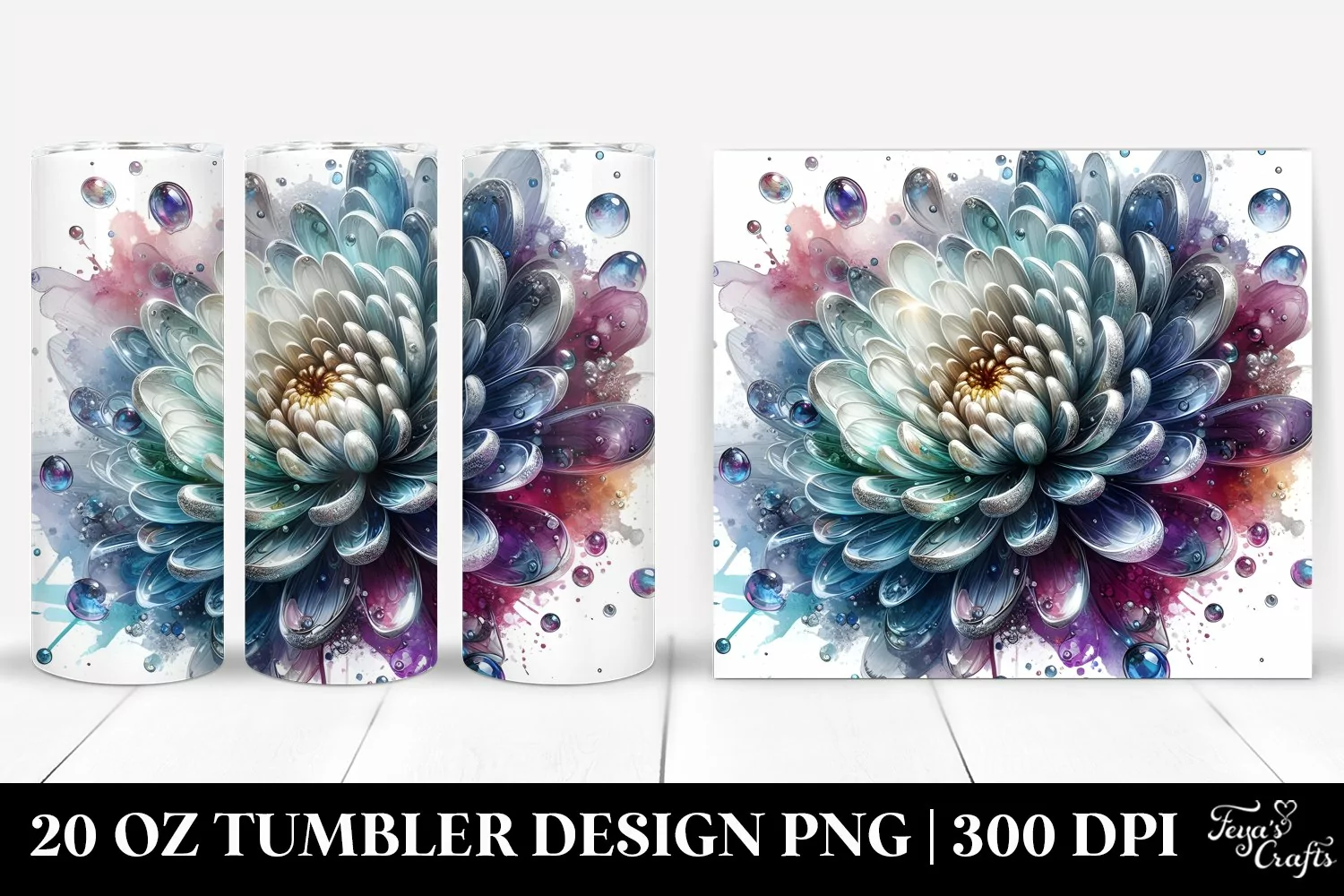 Sticker Summer Easter Glossy Splash Glass Metallic Chrysanthemum Sublimation Tumbler