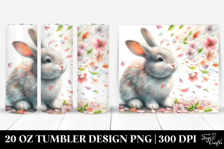 Watercolor Rabbit Tumbling with Spring Petals | 20 Oz