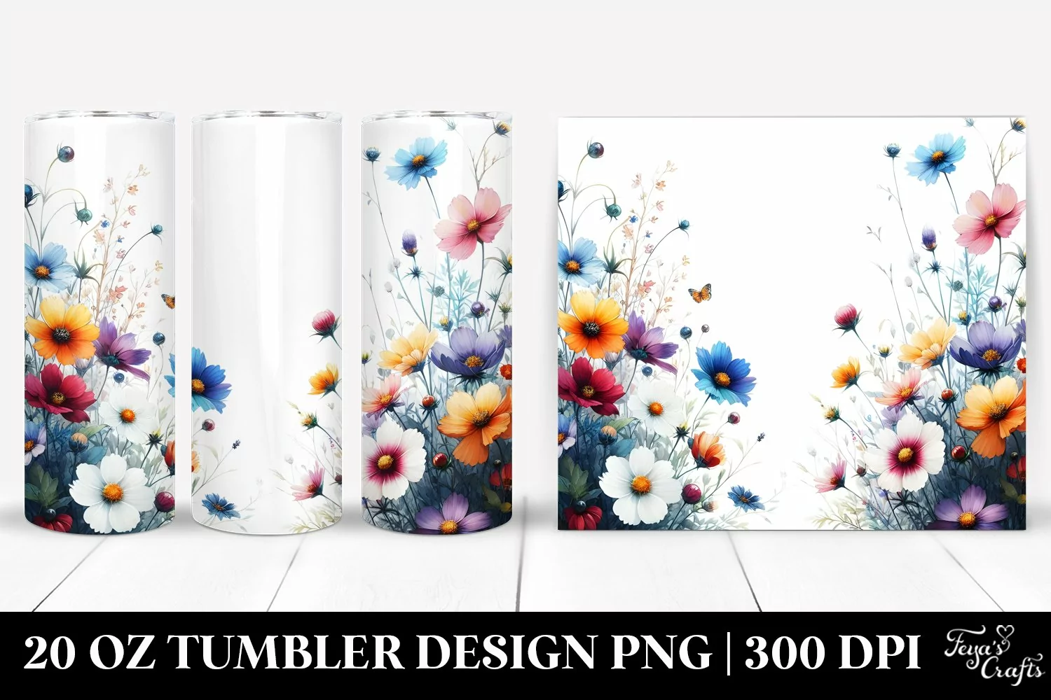 Watercolor Sticker Summer Easter Flower Vibrant Wildflowers Sublimation Tumbler Centered