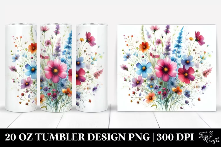 Watercolor Sticker Summer Easter Flower Vibrant Wildflowers Sublimation Tumbler Centered