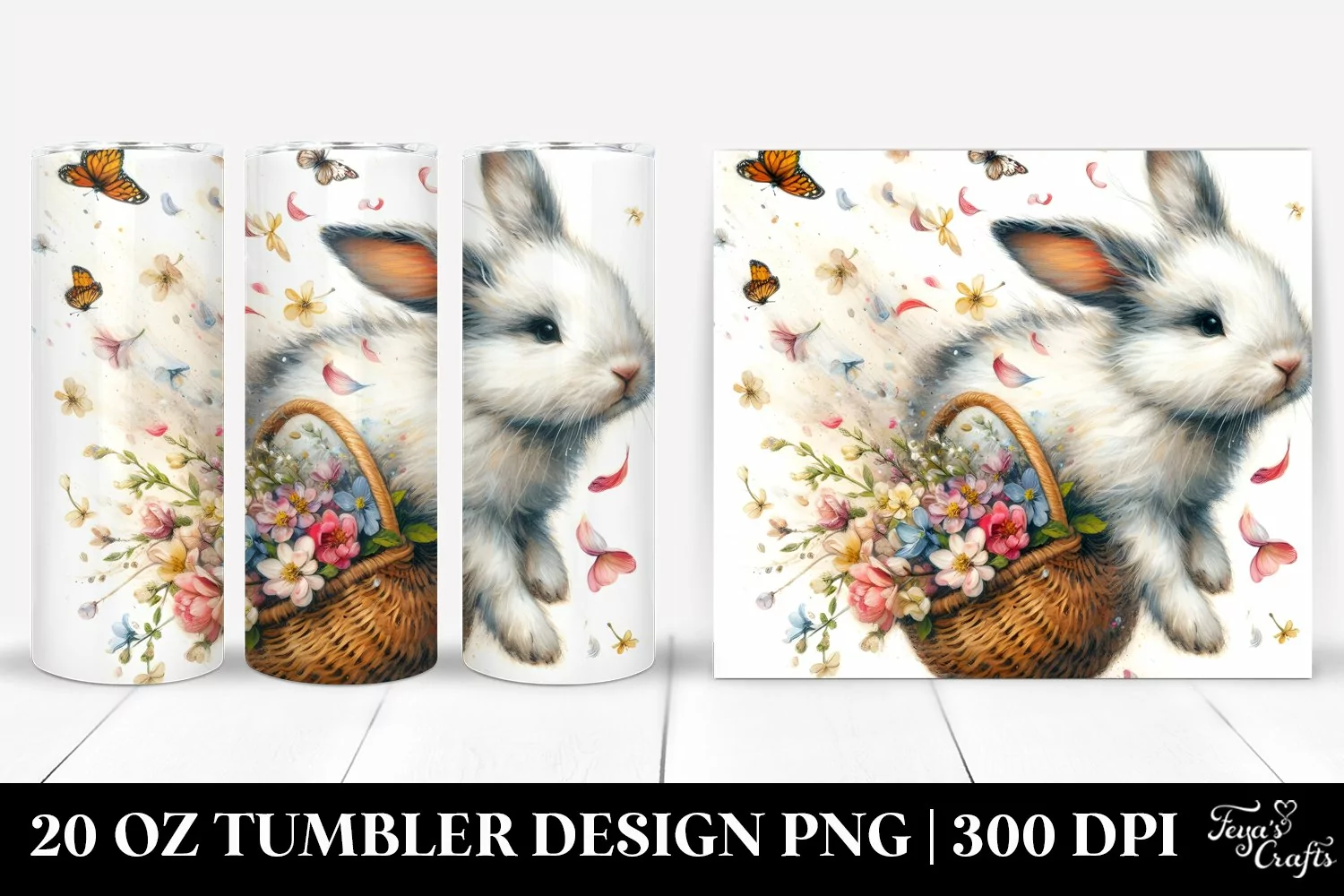 Rabbit Tumbling with Spring Petals | 20 Oz Tumbler example image 1