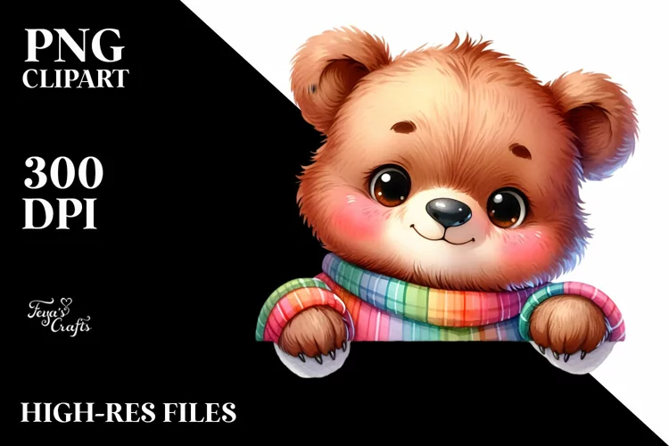 Colorful Baby Bear Big Eyes White Paper | Clipart example image 1