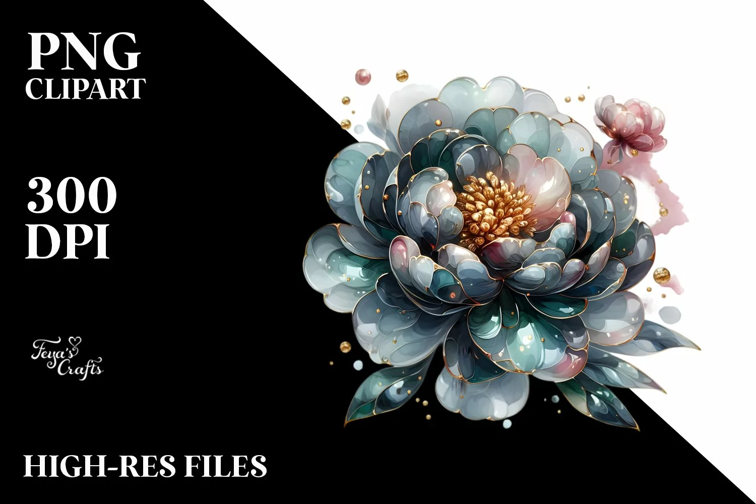 Watercolor Sticker Summer Flower Golden Peonies Png Glass Material Sublimation