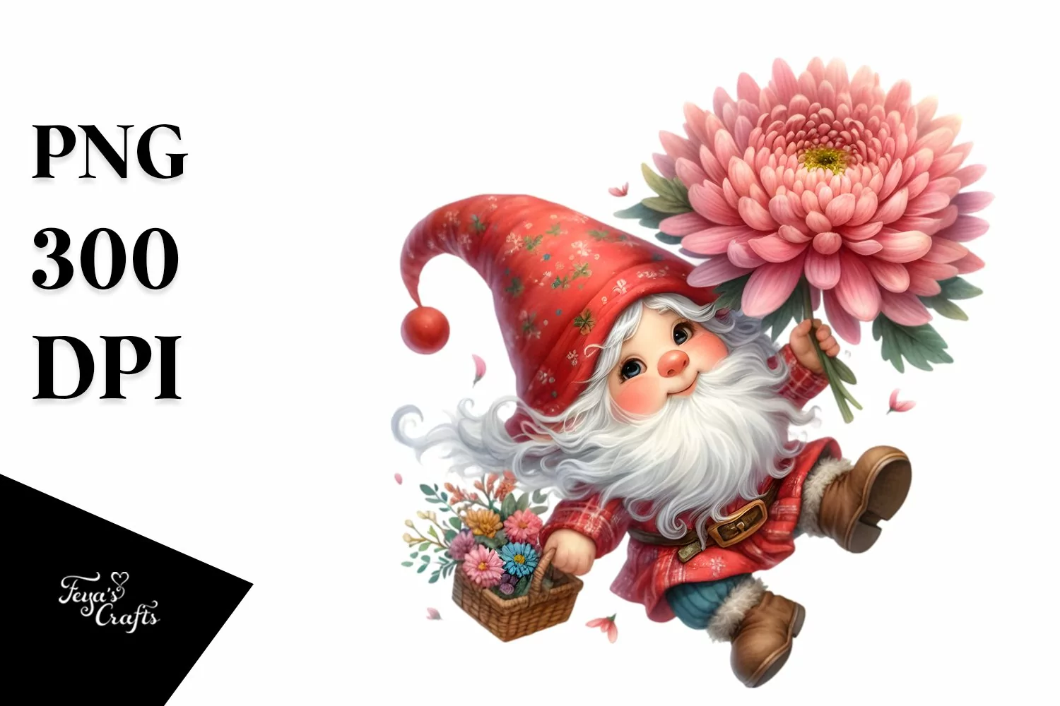 Falling Gnome with Chrysanthemum | Sublimation | Clipart example image 1
