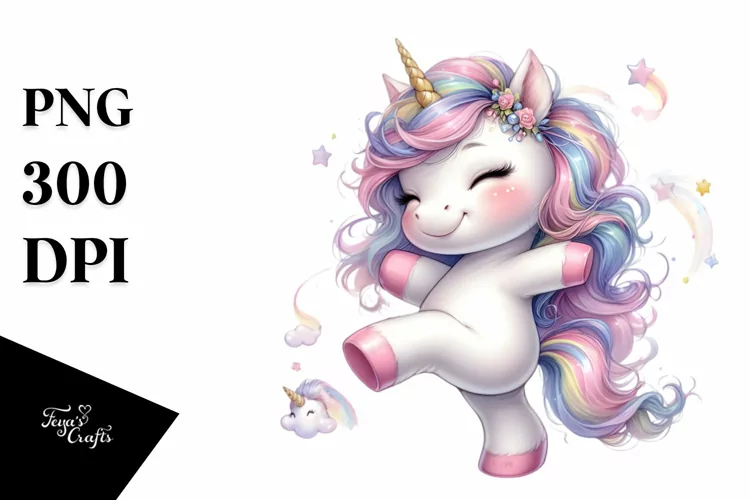 Cute Baby Unicorn Dancing | Watercolor example image 1