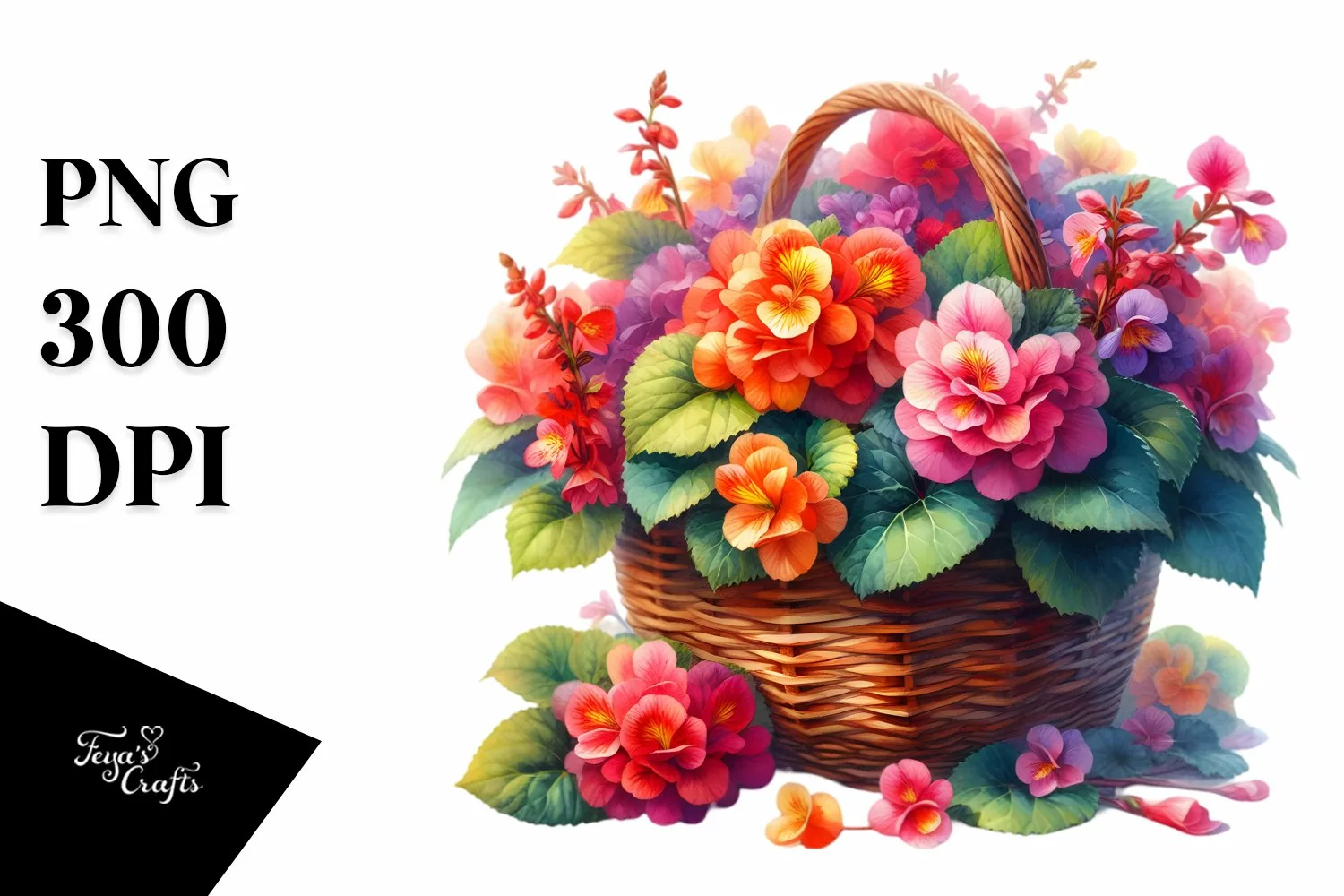 Colorful Basket with Begonia | Sublimation | Clipart example image 1