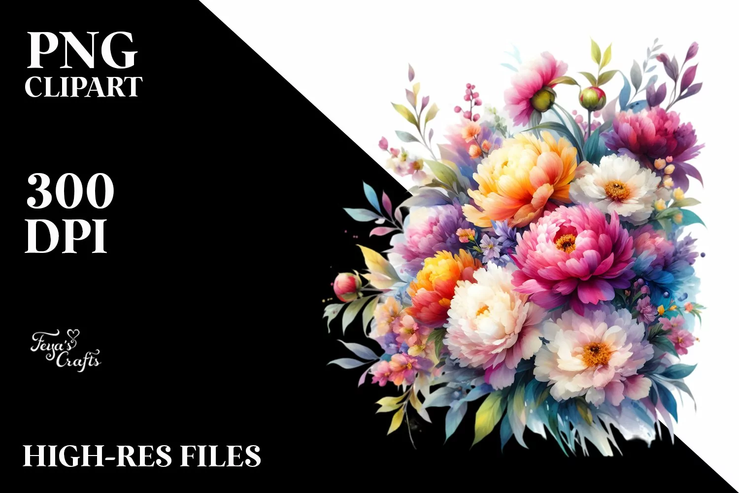 Watercolor Sticker Summer Colorful Flower Peonies Vibrant Png Sublimation Buquet