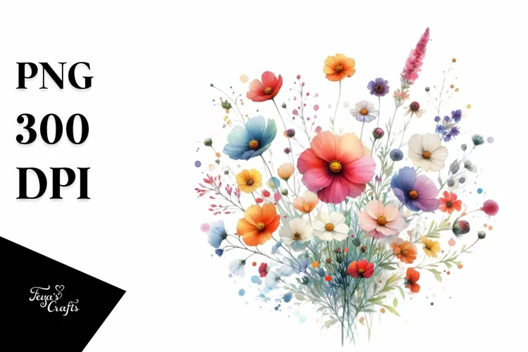 Similar Design Products to Colorful Watercolor Wild Flowers | Sublimation | Clipart