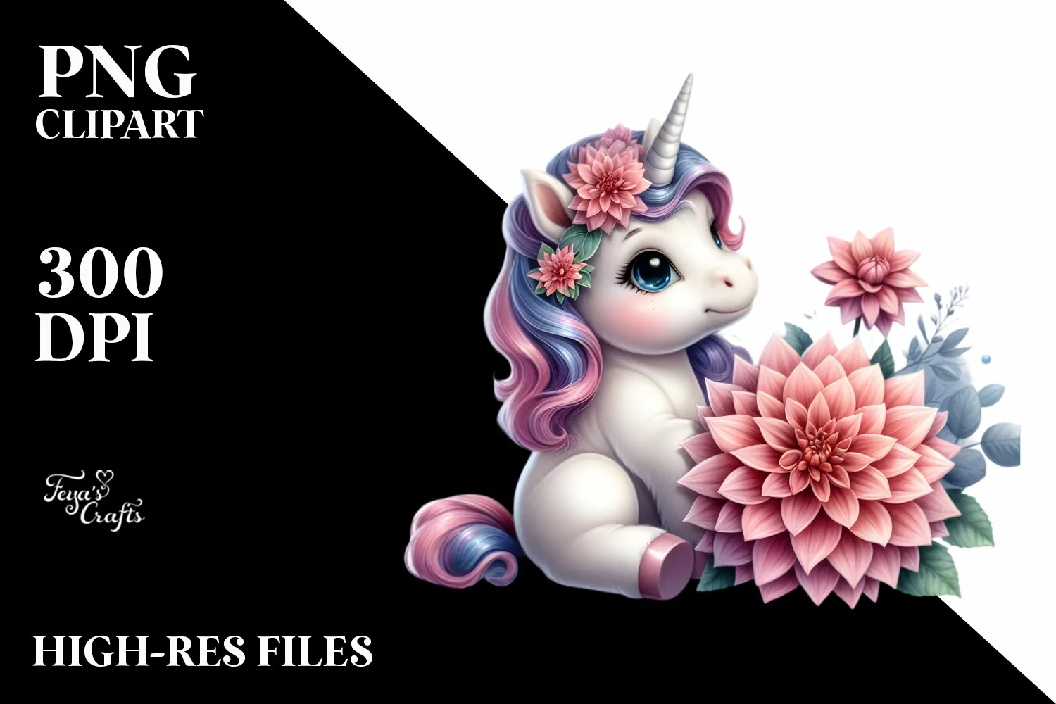 Colorful Baby Unicorn Dahlia Clipart