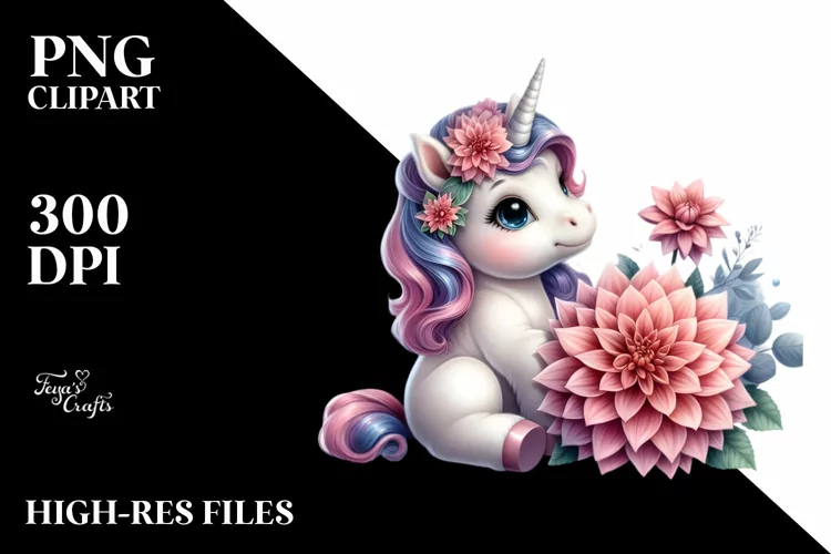 Similar Design Products to Colorful Baby Unicorn Dahlia Clipart