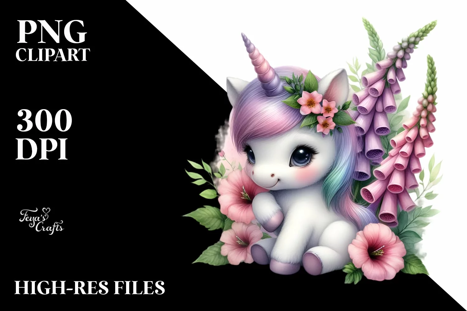 Similar Design Products to Colorful Baby Unicorn Foxglove Clipart