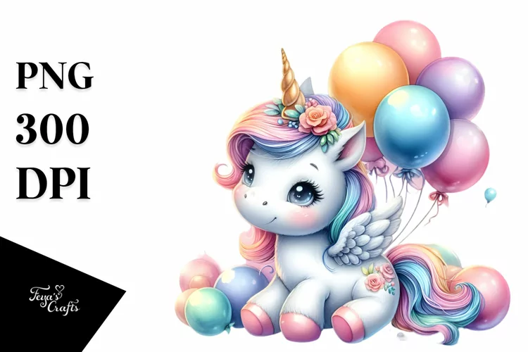 Cute Baby Unicorn Baloons | Clipart