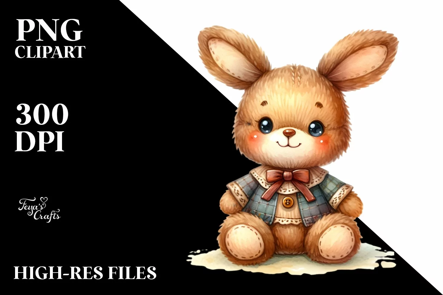 Colorful Plush Rabbit Sewed | Clipart example image 1