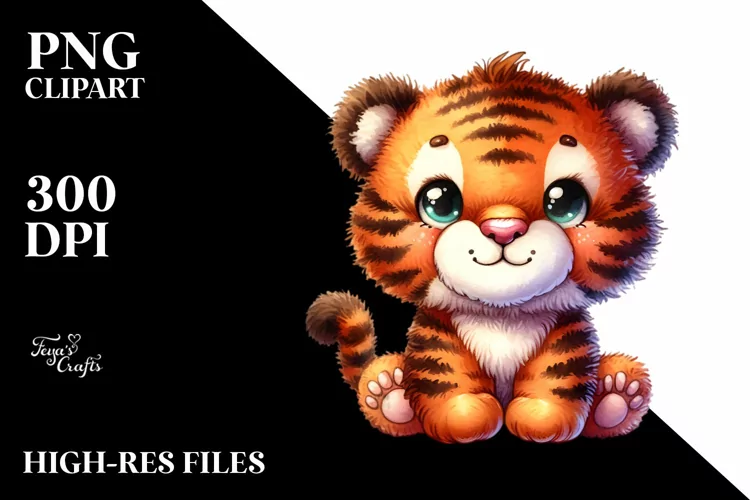 Colorful Brownish Plush Tiger Watercolor | Sublimation |