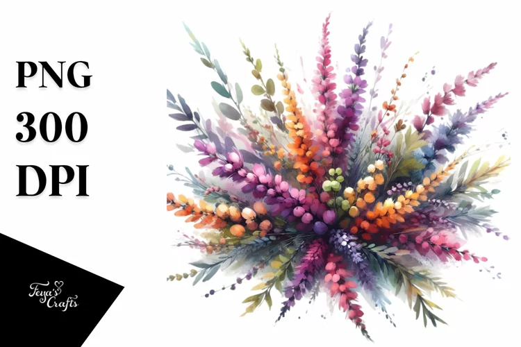 Colorful Watercolor Abstract Heather Bouquet example image 1