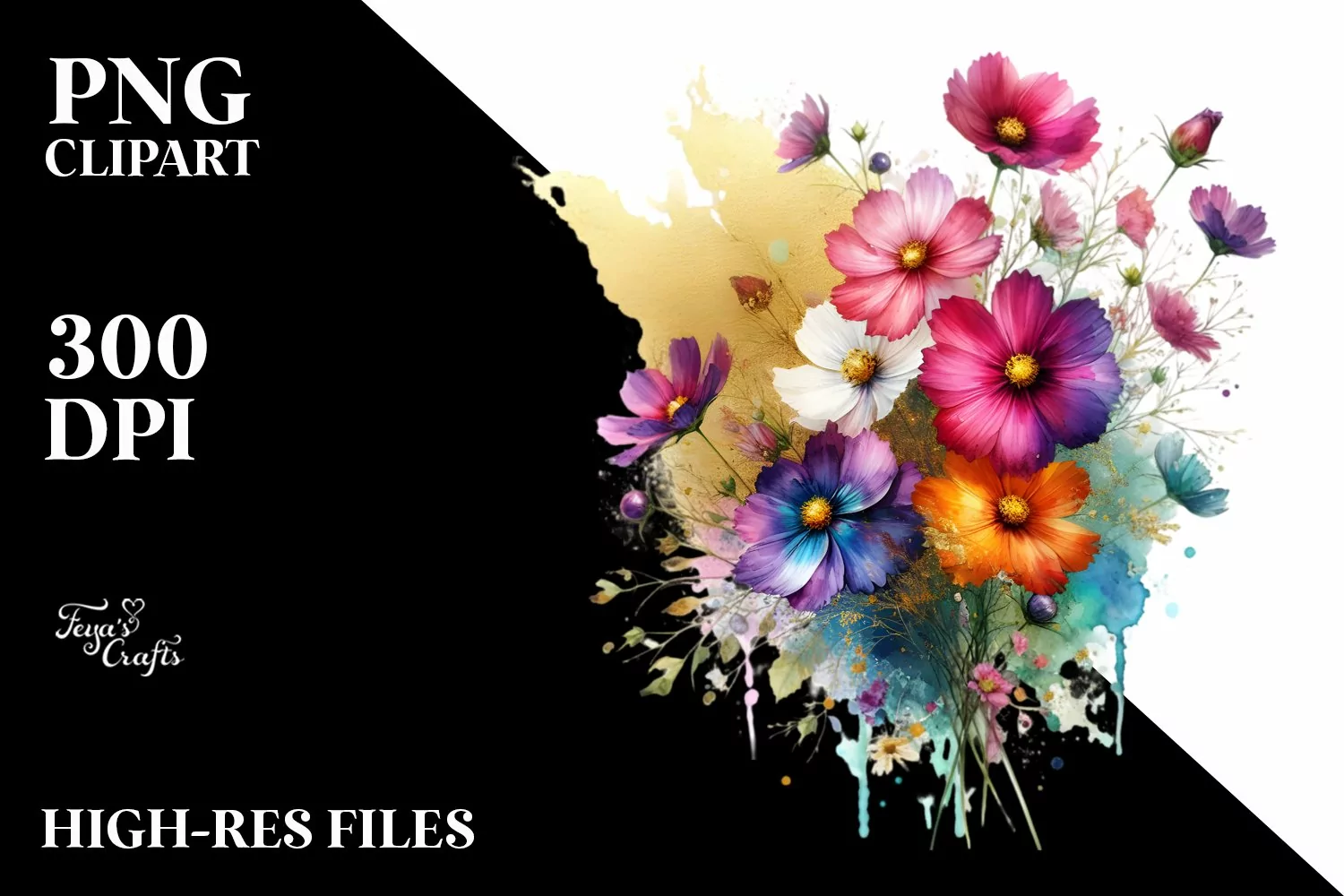 Vibrant Cosmos Gold Foil | Sublimation | Clipart example image 1