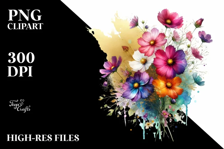 Similar Design Products to Vibrant Cosmos Gold Foil | Sublimation | Clipart