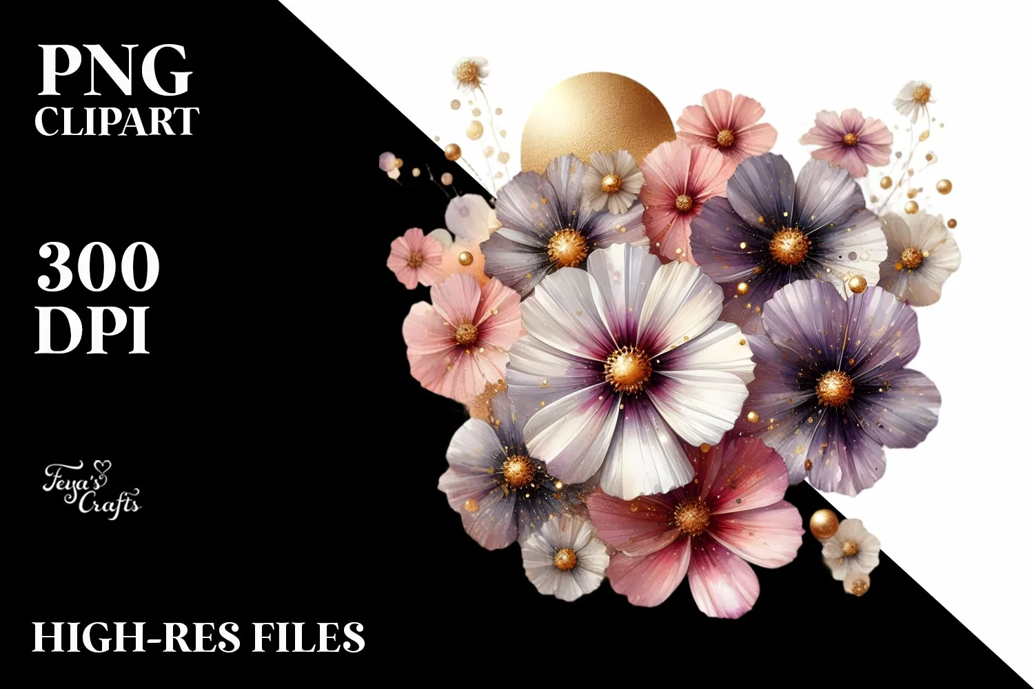 Shiny Cosmos with Golden Insertions | Clipart