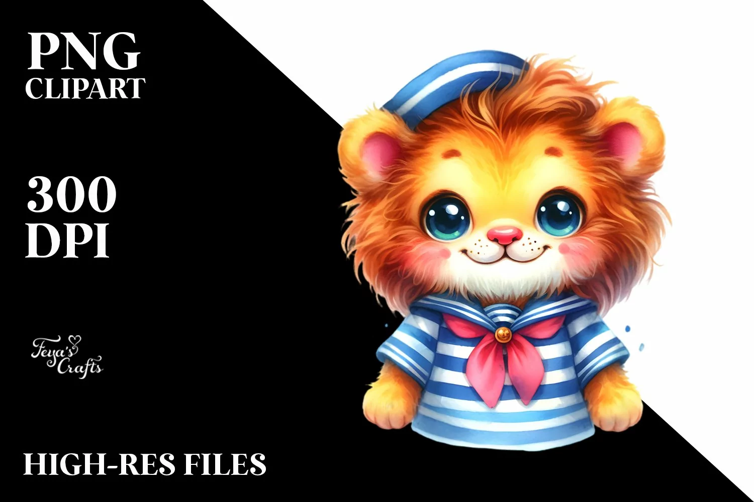 Smiling Baby Lion in Sailor Suit | Clipart example image 1