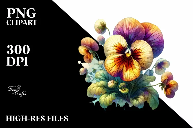 Stained Pansy Wooden | Sublimation | Clipart example image 1