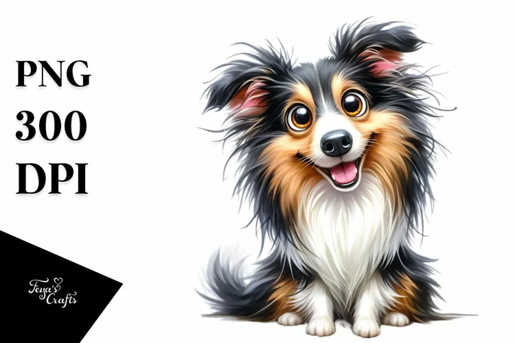 Cute Crazy Collie | Watercolor Funny example image 1