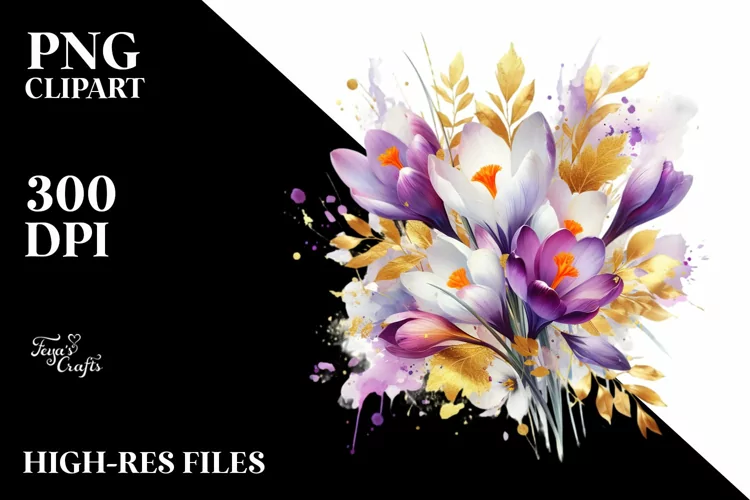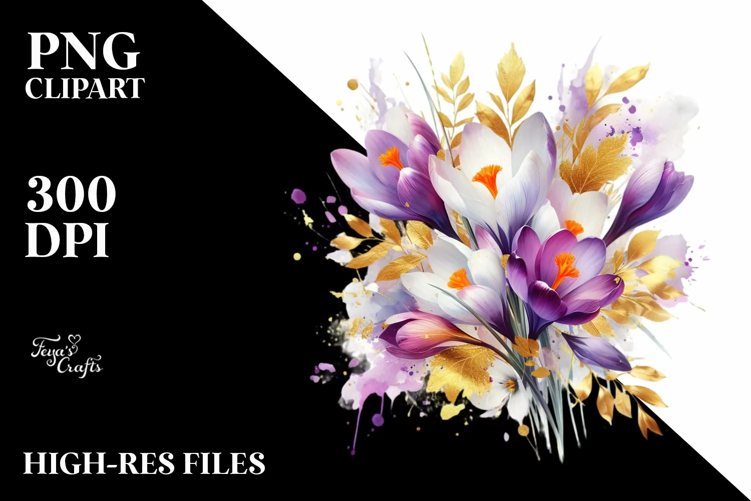 Sticker Summer Easter Flower Splash Png Sublimation Crocus Goldfoil Vibrantbouquet