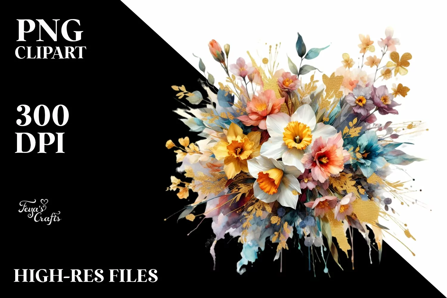 Colorful Bouquet with Narcissus and Splash | Clipart example image 1
