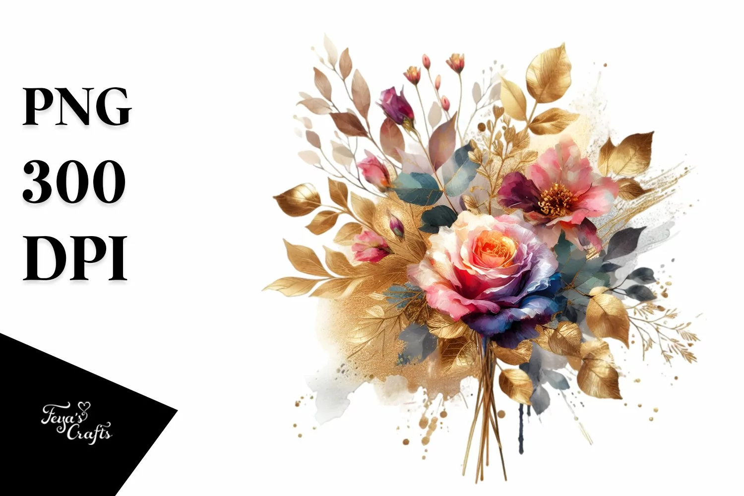 Colorful Bouquet with Colorful Violet Splash | Sublimation | example image 1