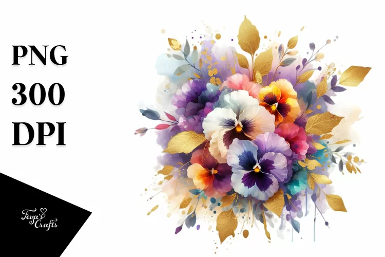 Similar Design Products to Colorful Pansy Splash Bouquet | Gold Foil Clipart
