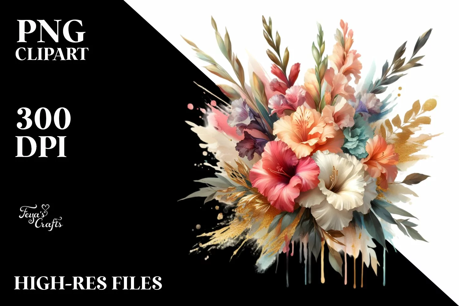 Colorfull Watercolor Bouquet with Gladiolus | Sublimation |