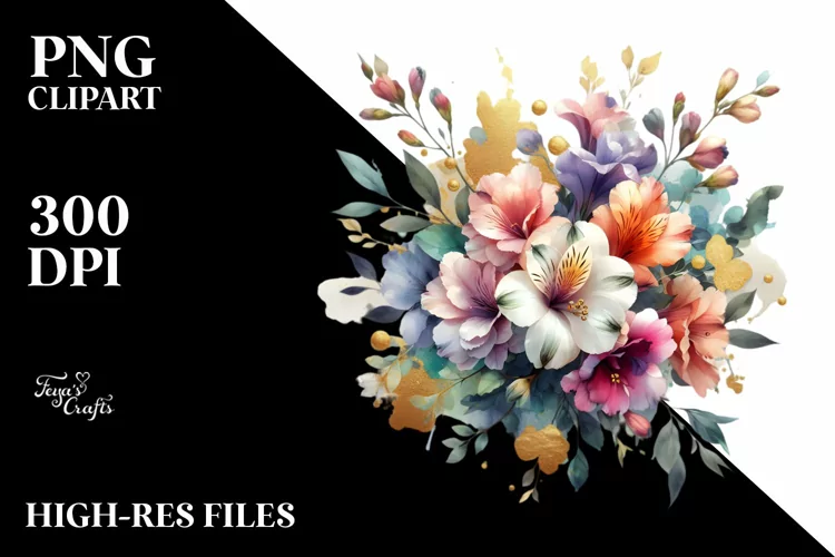 Colorfull Watercolor Bouquet with Freesia | Sublimation |