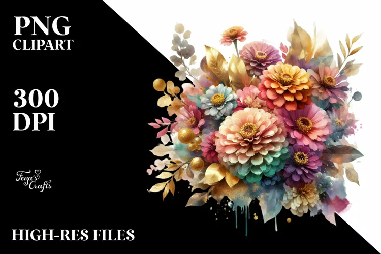 Similar Design Products to Colorful Zinnia Watercolor Abstract | Sublimation Clipart