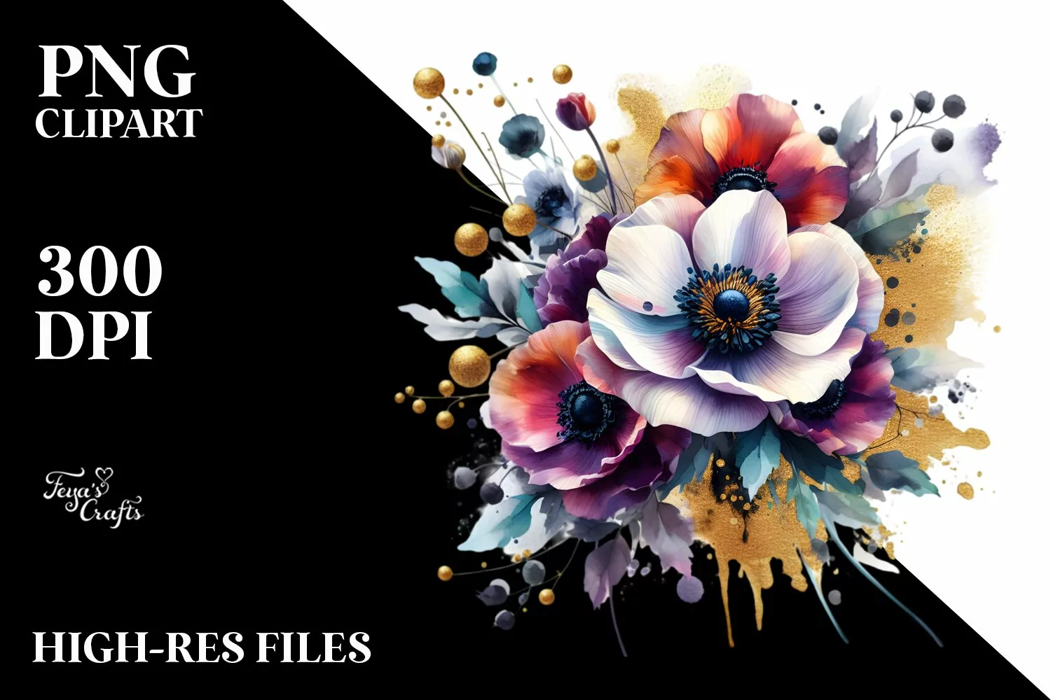 Vibrant Abstract Bouquet with Anemone | Sublimation Clipart example image 1