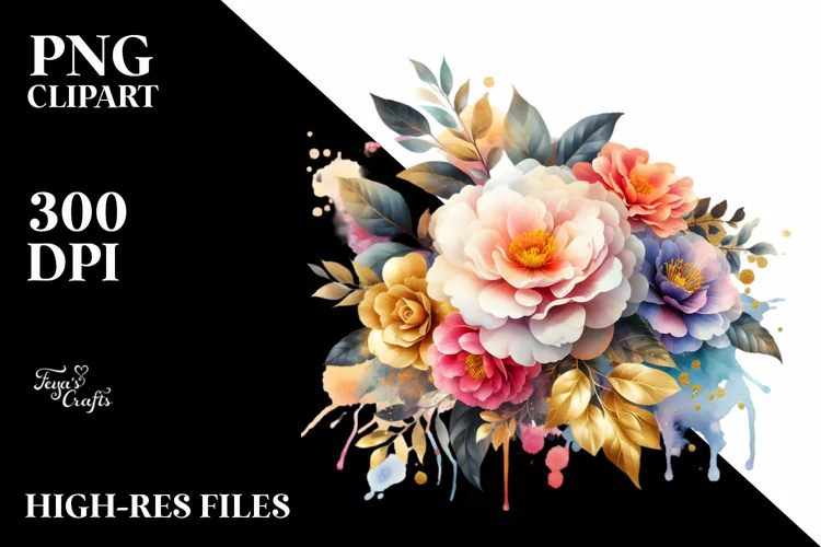 Similar Design Products to Vibrant Abstract Bouquet with Camellia | Sublimation Clipart