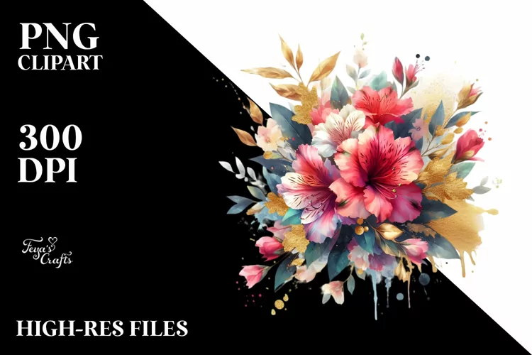 Vibrant Bouquet with Azalea and Gold Foil | Sublimation example image 1