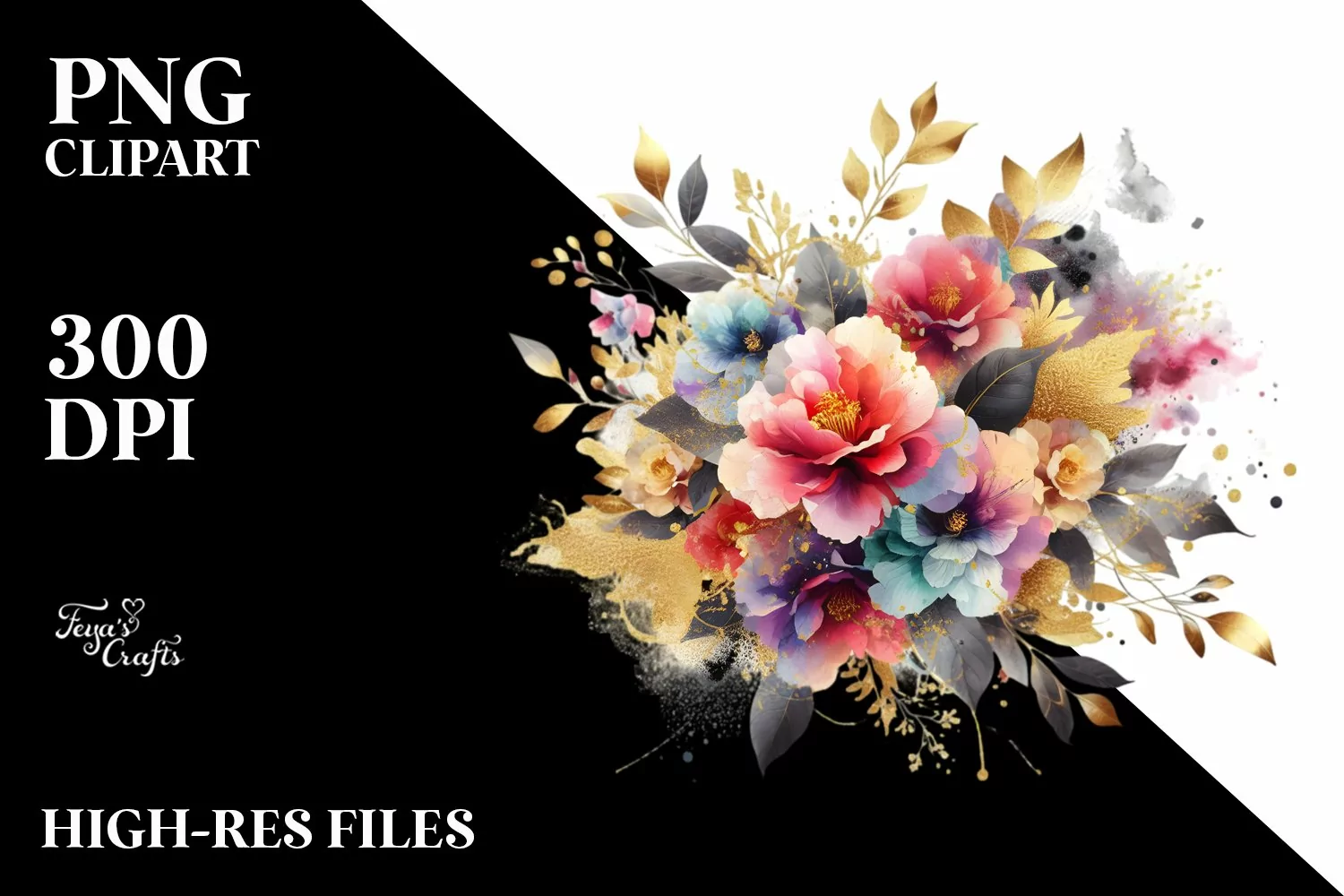 Similar Design Products to Colorful Bouquet with Camellia Splash | Sublimation Clipart