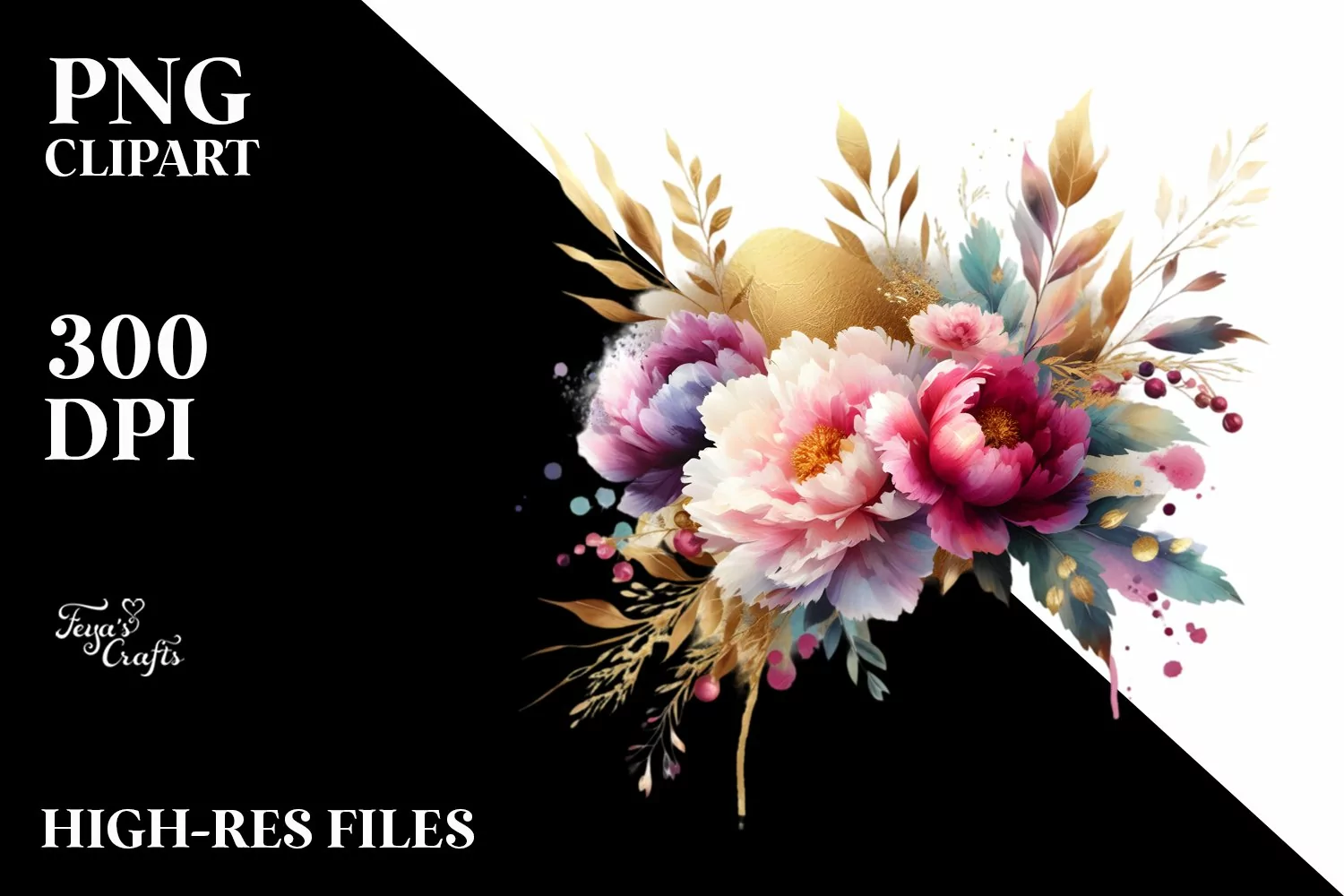 Colorful Bouquet with Peonies Splash | Sublimation Clipart