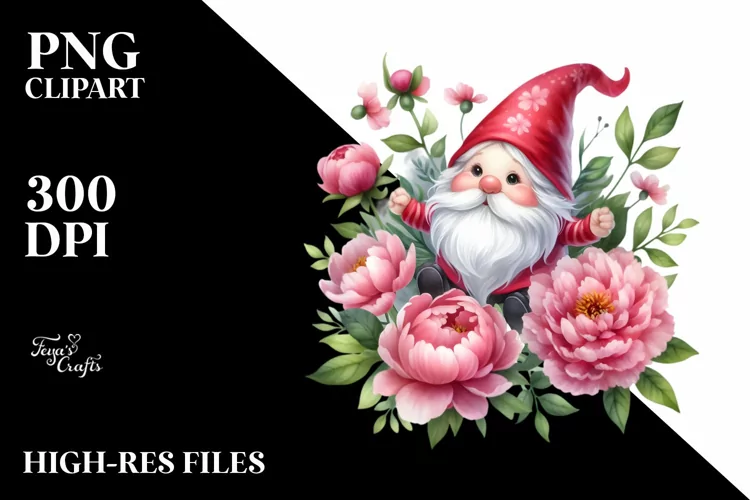 Cute Gnome Air Peonies Watercolor