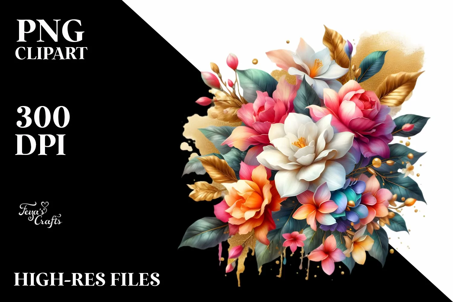 Vibrant Gardenia Bouquet Colorful | Sublimation | Clipart