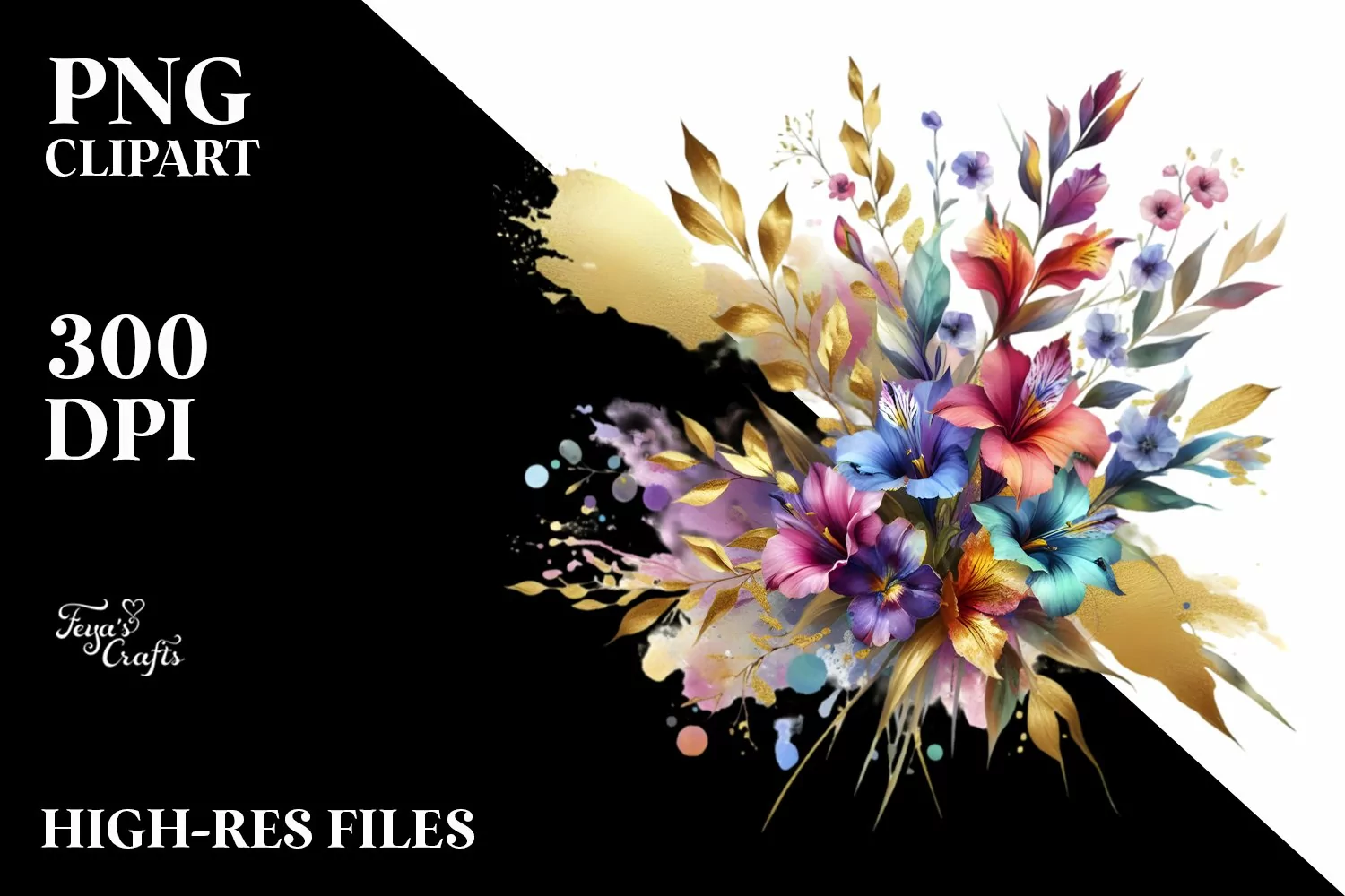 Watercolor Sticker Summer Easter Colorful Flower Abstract Png Sublimation Whitebackground