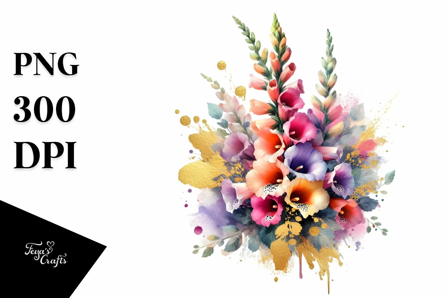 Similar Design Products to Vibrant Bouquet with Colorfull Foxglove | Gold Foil Clipart